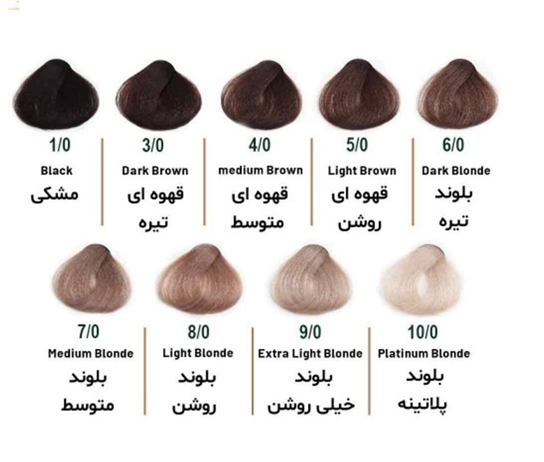 - رنگ شماره ۱ تا ۶ با اکسیدان ۶ درصد